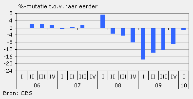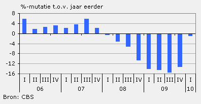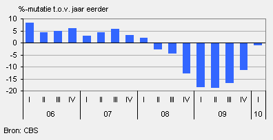 Ondernemers in de bedrijfsautobranche hebben in het eerste kwartaal van 2010 bijna 18 procent minder omgezet dan in het eerste kwartaal van 2009. Door teruglopende investeringen neemt de verkoop van bedrijfswagens al sinds medio 2008 af.