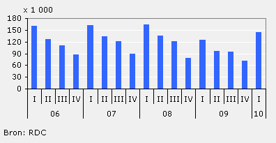 In het eerste kwartaal van 2010 werden ruim 145 duizend nieuwe auto’s verkocht. Dat is ruim 16 procent meer dan in het eerste kwartaal van 2009. Deze groei volgt op 6 kwartalen van verkoopdalingen. De afgelopen jaren worden er steeds meer kleinere en zuiniger auto’s verkocht.