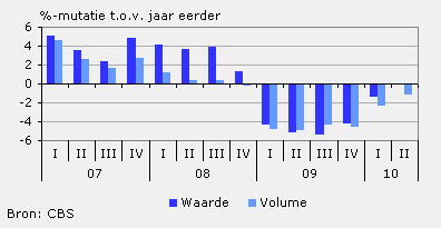 In het tweede kwartaal van dit jaar heeft de detailhandel vrijwel evenveel omzet geboekt als in het tweede kwartaal van 2009. De omzet nam met 0,1 procent af. Daarmee heeft de detailhandel zich nog niet hersteld van het forse omzetverlies in 2009. Binnen het tweede kwartaal van 2010 lieten de eerste twee maanden een lichte afname van de omzet zien. In juni was er echter een duidelijke toename van de omzet.