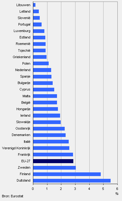 Aandeel van China in de totale uitvoer van de 27 EU-landen, januari - juni 2010