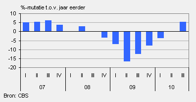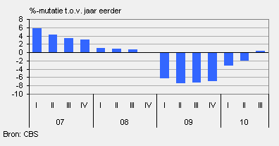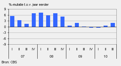 In het derde kwartaal van 2010 heeft de detailhandel 1,5 procent meer omzet behaald dan in dezelfde periode een jaar eerder. Daarmee is een eind gekomen aan een periode van 6 kwartalen op rij met omzetkrimp. Vooral de prijzen waren in het derde kwartaal hoger dan een jaar eerder. Het volume van de omzet bleef nagenoeg gelijk.