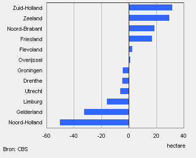 De oppervlakte glastuinbouw in Nederland is van 1 april 2009 tot 1 april 2010 met 14 hectare afgenomen. Dit is een afname van 0,15 procent. In Zuid-Holland, Zeeland, Noord-Brabant en Friesland steeg het glastuinbouwareaal met respectievelijk met 32, 30, 19 en 17 hectare ten opzichte van 2009. In Noord-Holland, Gelderland en Limburg daalde het glastuinbouwareaal met respectievelijk 50, 33 en 16 hectare.