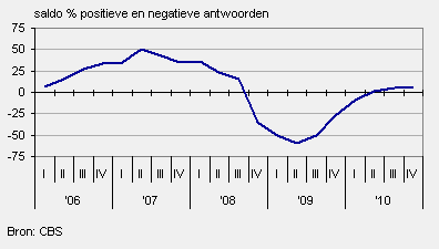Uit de conjunctuurtest van oktober 2010 blijkt dat de ondernemers in de zakelijke dienstverlening licht positief zijn gestemd over het economische klimaat. Dit is het derde kwartaal op rij dat ondernemers positief oordelen over het economische klimaat. In het begin van 2009 bereikte het oordeel over het economische klimaat een dieptepunt, waarna het herstel inzette.