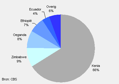 Naast Kenia behoren Zimbabwe, Oeganda, Ethiopië en Ecuador tot de vijf belangrijkste rozenleveranciers. Samen zijn deze landen goed voor 95 procent van de rozenimport in Nederland.