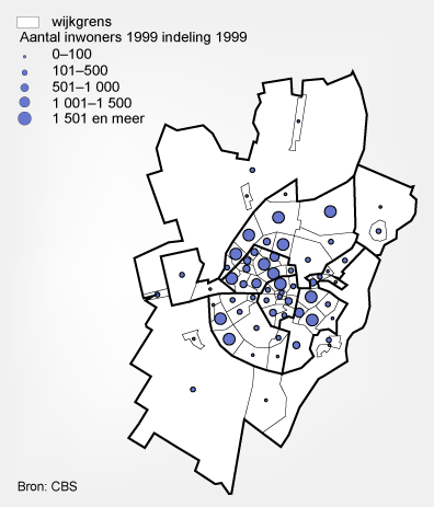 Kaart 2. Inwoners van de gemeente Assen in 1999 volgens de buurtindeling van 2009