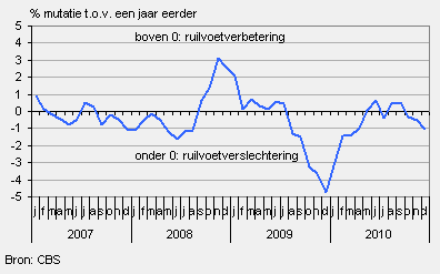 Na het uitbreken van de kredietcrisis in de herfst van 2008 verbeterde de ruilvoet van het goederenverkeer met het buitenland aanvankelijk fors. In de loop van 2009 sloeg de verbetering om in een verslechtering. Deze ontwikkeling hing onder meer samen met de aardolieprijs, die een grote invloed heeft op de invoerprijzen, en met enige vertraging ook op de uitvoerprijzen.