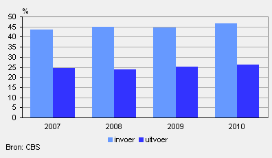 De handel met landen die geen lid zijn van de Europese Unie is de afgelopen jaren steeds belangrijker geworden. In 2010 kwam 46,5 procent van Nederlandse importwaarde van goederen uit niet-EU-landen. Dit was in 2007 nog 43,5 procent. Ook bij de export is dit aandeel in diezelfde periode licht gestegen van 24,5 naar 26 procent.