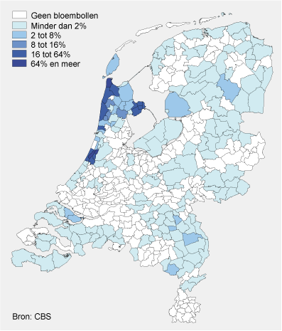 Bloembollenteelt is geconcentreerd in drie gebieden. Het grootste bloembollengebied is de gemeente Den Helder en omgeving (het landbouwgebied Texel en Land van Zijpe). In 2010 lag in dat gebied 27 procent van het bloembollenareaal. Op de tweede plaats komt de gemeente Stede Broec en omgeving (in het landbouwgebied West-Friesland en omgeving) met 19 procent. Op plaats drie staat de traditionele bollenstreek rond Lisse en Hillegom (het landbouwgebied met de naam Bollenstreek) met 11 procent. Verder is er relatief veel bloembollenteelt in de Noordoostpolder en Noord-Limburg.