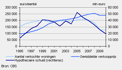 Tegenover de gestegen financiële vorderingen stond een historisch lage stijging van de hypothecaire schuld van 19 miljard euro. Het bedrag dat aan hypotheken werd opgenomen daalt voor het vijfde jaar op rij, en is de laagste stijging sinds 1995. De geringe stijging van de hypothecaire schuld hangt samen met een afname van het aantal verkochte woningen en aangescherpte voorwaarden voor het verkrijgen van een lening naar aanleiding van de crisis.