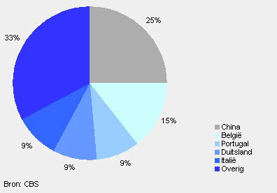 Aandeel belangrijkste importlanden schoenen, 2010