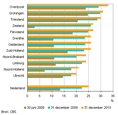 In Zuid-Holland zijn sinds de start van de verplichting de meeste labels uitgegeven: bijna 400 duizend, in Flevoland het laagste aantal: ruim 40 duizend. In beide provincies is dit iets meer dan een kwart van de woningvoorraad. In Overijssel is een derde van de woningvoorraad voorzien van een energielabel, in de provincie Utrecht heeft een vijfde van de woningen een energielabel.