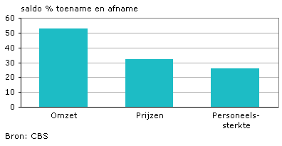 Voor het tweede kwartaal van 2011 zijn de ondernemers zeer optimistisch over de omzetverwachting. Per saldo verwacht ruim de helft van de ondernemers een hogere omzet te realiseren. In de komende drie maanden voorziet per saldo één op de drie ondernemers een stijging van de prijzen. Over de werkgelegenheid zijn de horecaondernemers ook gunstig gestemd. Per saldo verwacht ruim een kwart van hen in de komende periode een uitbreiding van het personeelsbestand.