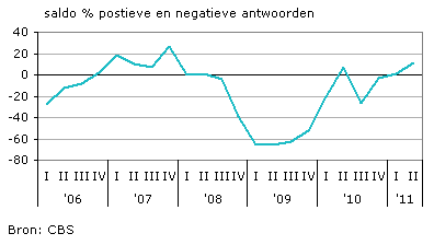 Uit de Conjunctuurtest van april 2011 blijkt dat de ondernemers in de schoonmaakbranche over het tweede kwartaal optimistischer gestemd zijn over het economische klimaat dan het vorige kwartaal. Per saldo ervaart elf procent van de ondernemers het economische klimaat als gunstig tegen één procent een kwartaal eerder. Begin 2009 bereikte het oordeel van de ondernemers een dieptepunt, gevolgd door een periode van verbetering tot het tweede kwartaal van 2010, waarna de stemming tijdelijk terugviel. Sinds het vierde kwartaal van vorig jaar verbeterde het oordeel van de ondernemers echter weer.