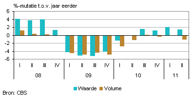 In het tweede kwartaal van 2011 heeft de detailhandel een omzetgroei behaald van 1,4 procent. De groei kwam geheel door hogere prijzen. Vooral voor brandstoffen en voor voedingsmiddelen moest meer betaald worden dan een jaar eerder. Het volume van de verkopen nam in het tweede kwartaal af met 1,1 procent. In de drie voorgaande kwartalen was het volume nog vrijwel even groot als een jaar eerder.