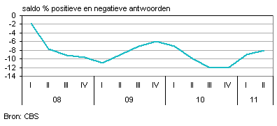 De koopbereidheid hangt samen met het oordeel van consumenten over hun eigen financiën en de vraag of zij de tijd gunstig vinden voor het doen van grote aankopen. Op deze punten zijn er momenteel aanzienlijk meer pessimisten dan optimisten. In juni lag de koopbereidheid (-8) vrijwel op hetzelfde niveau als in maart dit jaar. Daarna zakte de koopbereidheid via -9 in juli naar -10 in augustus. Dit is laag. De consument gaf de economie in de eerst helft van 2011 dan ook nauwelijks een impuls. Huishoudens gaven ongeveer evenveel uit aan goederen en diensten als in de eerste helft van 2010.