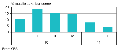 De omzetgroei van de detailhandel via postorder en internet was in het tweede kwartaal duidelijk lager dan in voorgaande kwartalen. De omzetgroei kwam uit op 4 procent. In het eerste kwartaal was deze groei nog bijna 8 procent en in 2010 kwam de groei ieder kwartaal nog in de dubbele cijfers uit.