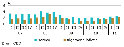 In het tweede kwartaal van 2011 heeft de horeca, inclusief verblijfsrecreatie en cateringbedrijven, fors meer omzet behaald dan een jaar eerder. De stemming onder de ondernemers in de horeca is nog steeds positief. Het oordeel over het economische klimaat is al bijna vijf kwartalen onafgebroken positief. Voor het derde kwartaal wordt een omzetstijging, vrijwel ongewijzigde prijzen en een uitbreiding van het personeelsbestand verwacht.