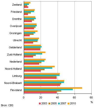 In 2010 kon in de provincie Flevoland met 69 procent het grootste deel van landbouwgrond beregend worden. Daarna kwamen de provincies Noord-Brabant en Limburg met respectievelijk 48 procent en 42 procent. De provincie Zeeland sluit de rij met 8 procent. In de periode 2003-2010 is het areaal landbouwgrond dat beregend kon worden gestegen met 125 duizend hectare (+35 procent). Flevoland had met een uitbreiding van 26 duizend hectare (+75 procent) de grootste toename. Daarna volgen de provincies Noord-Holland met een toename van 20 duizend hectare (+75 procent) en Zuid-Holland met 19 duizend hectare (+125 procent). In 2010 was het mogelijk om 26 procent van alle landbouwgrond te beregenen.