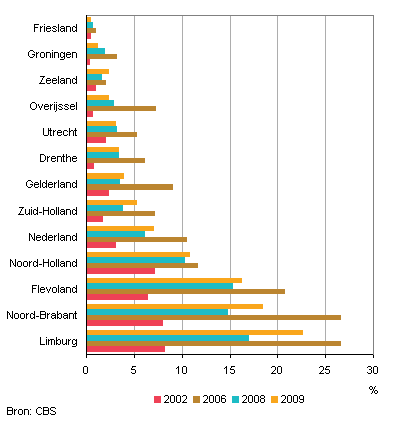 In de provincies Noord-Brabant en Limburg wordt door de jaren heen relatief het meest beregend. In het topberegeningsjaar 2006 werd zowel in Noord-Brabant als in Limburg bijna 27 procent van de landbouwgrond beregend. Het jaar 2006 had een normale hoeveelheid neerslag, maar de neerslag per maand liet grote variaties zien. De maanden juni, juli en september waren erg droog. Daar tegenover stond de maand augustus, die de natste in honderd jaar was. Het neerslagtekort was vooral in de maand juli fors opgelopen. Het jaarlijkse verloop van het neerslagtekort was in de periode 2002-2009 sterk wisselend, maar er was een onmiskenbare trend naar meer beregening. Die trend gaf een verdubbeling aan van het areaal landbouwgrond dat beregend werd.