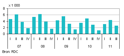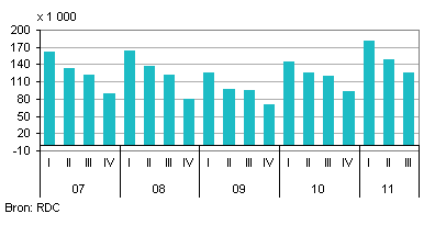 In het derde kwartaal van 2011 werden bijna 126 duizend nieuwe personenauto’s verkocht. Dat is ruim 4 procent meer dan in diezelfde periode vorig jaar. De groei in de verkopen van nieuwe auto’s loopt hiermee fors terug.