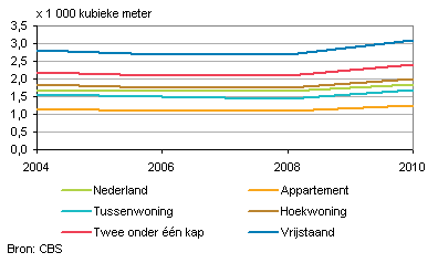 Het verbruik van gas is ten opzichte van 2008 relatief sterker gestegen tot 1 850 kubieke meter. Deze stijging van het gemiddelde verbruik met zo’n 200 kubieke meter heeft vooral te maken met de koude wintermaanden in 2010.
