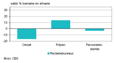 In het vierde kwartaal daalde de omzet in de reclamebranche. Over geheel 2011 was er eveneens sprake van een omzetdaling. Uit de conjunctuurenquête van januari 2012 blijkt dat de ondernemers in de reclamebranche pessimistisch waren gestemd over het economische klimaat in het vierde kwartaal van 2011. Verder verwachten de reclamebureaus hogere tarieven aan hun klanten in rekening te brengen en een verslechtering van de werkgelegenheid in hun branche.