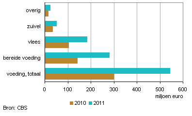 De uitvoer van voeding naar Hongkong is in 2011 met 81 procent gestegen tot ruim 0,5 miljard euro. Hiermee bestaat ruim een derde van de Nederlandse export naar Hongkong uit voeding. Het gaat hier vooral om bereidingen van meel, zetmeel, melk, room en yoghurt en vlees en vleesproducten.