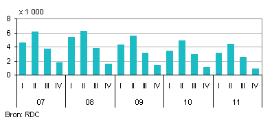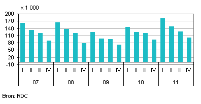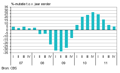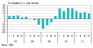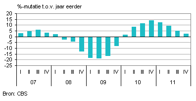 Na drie kwartalen met forse omzetstijgingen is de omzet van de bedrijfsautobranche in het vierde kwartaal van 2011 minder sterk toegenomen. In vergelijking met het vierde kwartaal van 2010 kwam de omzet ruim 8 procent hoger uit. De omzet groeide in de eerste drie kwartalen van 2011 nog met 17 tot 24 procent.