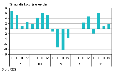 In het vierde kwartaal van 2011 was de omzet in de motor- en autobranche ruim 2 procent hoger dan in hetzelfde kwartaal vorig jaar. De omzet in de auto-onderdelen en -accessoirebranche nam het sterkste toe, namelijk ruim 10 procent.
