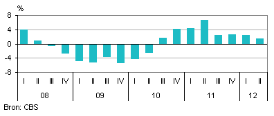 In het tweede kwartaal van 2012 heeft de horeca 1,4 procent meer omgezet dan in hetzelfde kwartaal een jaar eerder. Hotels, restaurants, cafetaria’s en verblijfsrecreatie realiseerden in het tweede kwartaal een omzetgroei. In tegenstelling tot deze horecabranches zagen de cafés en cateringbedrijven hun omzet afnemen. De omzet van cafés daalde met 2,2 procent. De cateringbedrijven boekten ruim een half procent minder omzet dan een jaar eerder.