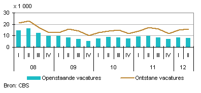 Eind juni 2012 bedroeg het aantal openstaande vacatures in de horeca ruim 8 duizend. Een jaar eerder waren dit er bijna 10 duizend. Het aantal vacatures dat ontstond in het tweede kwartaal van 2012 bedroeg 16 duizend, duizend minder dan een jaar eerder. Het aantal mensen dat in het tweede kwartaal een baan vond in de horeca was met 16 duizend gelijk aan het aantal in dezelfde periode van 2011.