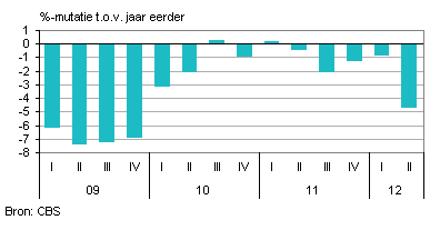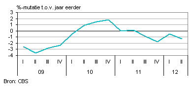 Na zeven kwartalen met omzetgroei moest de detailhandel in het tweede kwartaal van 2012 met minder omzet genoegen nemen dan een jaar eerder. De afname bedraagt ongeveer 2 procent en is toe te rekenen aan een verminderde verkoop. Het volume kromp harder dan dat de prijzen stegen. Consumenten zijn somber over de economie en hun eigen financiële situatie. Het vertrouwen evenaarde in het tweede kwartaal het dieptepunt uit 2003. Huishoudens besteedden, mede door een koopkrachtdaling, minder aan goederen en diensten dan een jaar eerder. Het aantal faillissementen in de detailhandel nam af in vergelijking met vorig kwartaal. Toch ligt dit aantal nog steeds hoger dan in de afgelopen jaren. De vraag naar personeel in de detailhandel nam dit kwartaal toe. Het aantal openstaande en ontstane vacatures steeg licht in vergelijking met een kwartaal eerder. Ook het aantal vervulde vacatures nam enigszins toe.