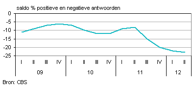 De stemming onder Nederlandse consumenten is nog steeds negatief. In juni 2012 evenaarde de indicator van het consumentenvertrouwen met -40 het dieptepunt uit juli 2003. In juli verbeterde de indicator met 8 punten, naar -32. In augustus veranderde de stemming nagenoeg niet. Ook na de verbetering in juli is het vertrouwen erg laag. Het gemiddelde over de afgelopen twintig jaar staat op -8.