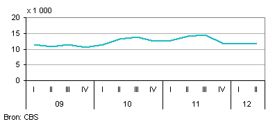 In het tweede kwartaal van 2012 is het aantal openstaande vacatures opgelopen tot 11,9 duizend. Het aantal vacatures was in de eerste drie maanden van 2012 bijna 3 procent lager. Ten opzichte van het tweede kwartaal van 2011 kwam het aantal openstaande vacatures echter bijna 16 procent lager uit.