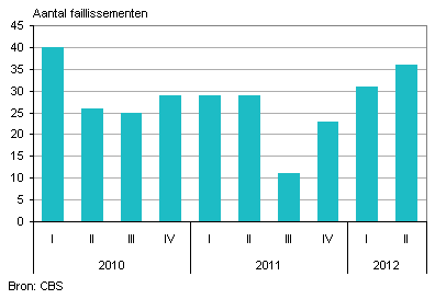 Van de ongeveer 5 duizend groothandelaren in bouwmaterialen gingen er in het eerste halfjaar van 2012 67 failliet. In dezelfde periode in 2011 waren er dit nog 58. Het aantal faillisementen in het eerste halfjaar van 2012 is het hoogste sinds het eerste halfjaar van 2010 toen 66 bedrijven failliet gingen.