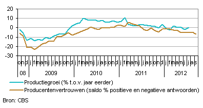 De stemming onder de ondernemers in de industrie is in september 2012 verslechterd. Het producentenvertrouwen kwam uit op -6,7, tegen -4,6 in augustus. In de voorgaande vier maanden veranderde het producentenvertrouwen nauwelijks.