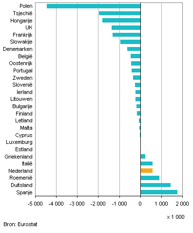 Verschil aantal varkens EU, 2011 t.o.v. 2001