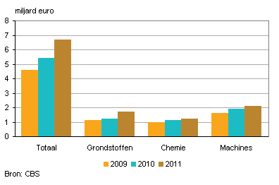 De uitvoer naar China blijft gestaag groeien. Met een exportwaarde van 6,7 miljard euro in 2011 staat China voor het eerst in de top-10 van belangrijkste exportlanden. Vooral de uitvoerwaarde van papierstof, papierafval en metaalafval is flink gestegen. Naar China gaat bijna een vijfde van ons metaalafval. Daarnaast is de uitvoer van gespecialiseerde machines in twee jaar tijd meer dan verdubbeld.