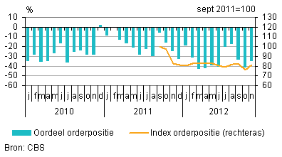 2) index orderpositie = ontvangen orders uitgedrukt in maanden werk, geïndexeerd
