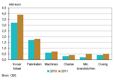 De invoer uit Finland is in 2011 met 710 miljoen euro in waarde gestegen. Aardolieproducten waren goed voor 40 procent van deze groei. Er werd vooral meer gasolie (+66 miljoen kilo) en stookolie (+129 miljoen kilo) ingevoerd in vergelijking met 2010. Tevens is zowel de prijs van gasolie als stookolie flink gestegen.