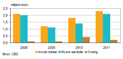 De ingevoerde hoeveelheid ruwe aardolie uit Koeweit is in 2011 met bijna 500 miljoen kilogram gestegen tot 3,8 miljard kilo. Hier stond een invoerwaarde van 2,1 miljard euro tegenover. De gemiddelde olieprijs steeg van 43 naar 55 eurocent per kilo. Door deze flinke invoerstijging en de bijna halvering van de invoer van ruwe aardolie uit het Verenigd Koninkrijk is Koeweit weer toegetreden tot de top-5 van belangrijkste olieleveranciers.