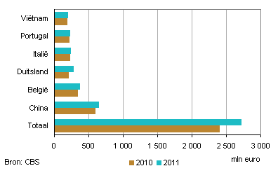 Schoenen hebben een aandeel van 15 procent in de Nederlandse invoer uit Portugal. In 2011 is de invoer met 5 procent gestegen tot 233 miljoen euro. Portugal staat hiermee in de top-5 van belangrijkste schoenleveranciers. Nederland importeert de meeste schoenen uit China.