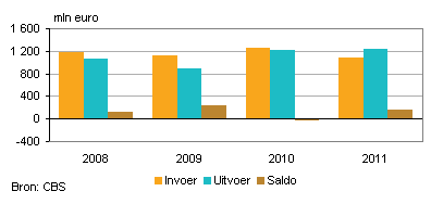 In 2011 heeft Nederland voor 1,1 miljard euro aan goederen uit Slowakije ingevoerd. Dit is 13 procent minder dan in 2010. Er werden vooral minder televisies (-24 procent) ingevoerd. De uitvoer naar Slowakije lag met 1,2 miljard euro (+23 miljoen euro) nagenoeg op hetzelfde niveau als in 2010. Dit is de hoogste exportwaarde gemeten sinds de toetreding van Slowakije tot de EU in 2004.