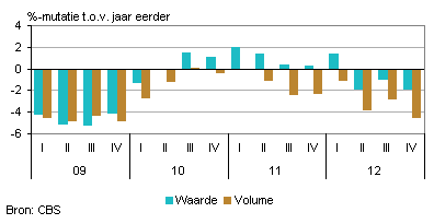 In het vierde kwartaal van 2012 had de detailhandel wederom te kampen met een omzetkrimp. De omzetafname in de non-foodbranche, de grootste daling van de afgelopen drie jaar, speelde hierbij een belangrijke rol. Op jaarbasis nam de omzet van de detailhandel uiteindelijk ook licht af. Nederlandse consumenten waren het afgelopen jaar erg somber en huishoudens hielden de hand op de knip. Het aantal faillissementen bereikte in de detailhandel in 2012 een recordhoogte.
