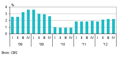 In het vierde kwartaal van 2012 lagen de prijzen van de schoonmaakbedrijven 2,2 procent hoger dan in dezelfde periode een jaar eerder. De prijstoename was hiermee even groot als een kwartaal eerder. Voor heel 2012 bedroeg de prijsstijging 2,1 procent, voor 2011 was dit 1,8 procent.