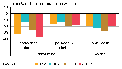 Over de orderpositie in het vierde kwartaal van 2012 waren de ondernemers iets minder negatief dan een kwartaal eerder. Per saldo beoordeelde 20 procent van de ondernemers deze als te klein.