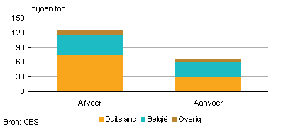 Duitsland is de voornaamste buitenlandse bestemming van goederen die over de Nederlandse binnenwateren worden afgevoerd. In 2012 werd 74 miljoen ton naar Duitsland verscheept. Dat is twee keer zoveel als over de weg naar Duitsland wordt getransporteerd. De totale af- en aanvoer naar en van Duitsland over de binnenwateren kwam in 2012 uit op ruim 100 miljoen ton en was daarmee hoger dan het binnenlandse vervoer.