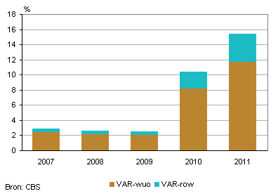 De VAR is in 2005 ingevoerd. Tussen 2007 en 2009 beschikte ongeveer 2 procent van de zelfstandigen zonder personeel over een VAR-wuo. In 2010 en 2011 is er een duidelijke toename van het gebruik van de VAR-wuo onder de zelfstandigen zonder personeel. In 2010 lag het percentage op ruim 8 procent en in 2011 op bijna 12 procent. Ook het gebruik van de VAR-row nam vanaf 2010 toe bij zelfstandigen zonder personeel. In 2011 had ruim 3,5 procent een VAR-row.