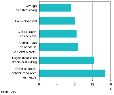 Aandeel geregistreerde bedrijven en instellingen belangrijkste sectoren, 2011