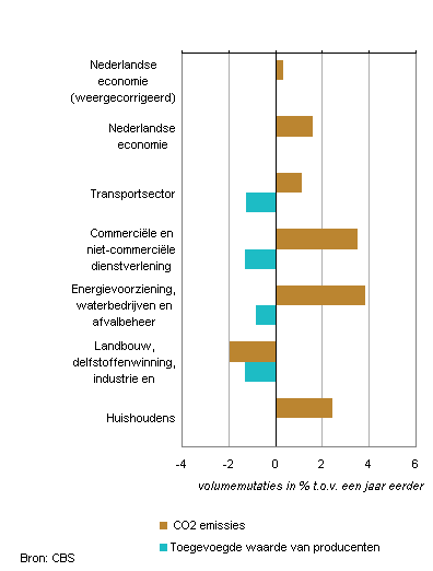 De transportsector is ook verantwoordelijk voor een hogere CO2- uitstoot terwijl de toegevoegde waarde omlaag is gegaan. Dit komt voornamelijk door de hogere productie van de luchtvaart. De luchtvaart heeft een beter kwartaal doorgemaakt en dit is gepaard gegaan met meer vliegbewegingen. Per eenheid toegevoegde waarde stoot de luchtvaart meer CO2 uit dan de andere branches in de transportsector.